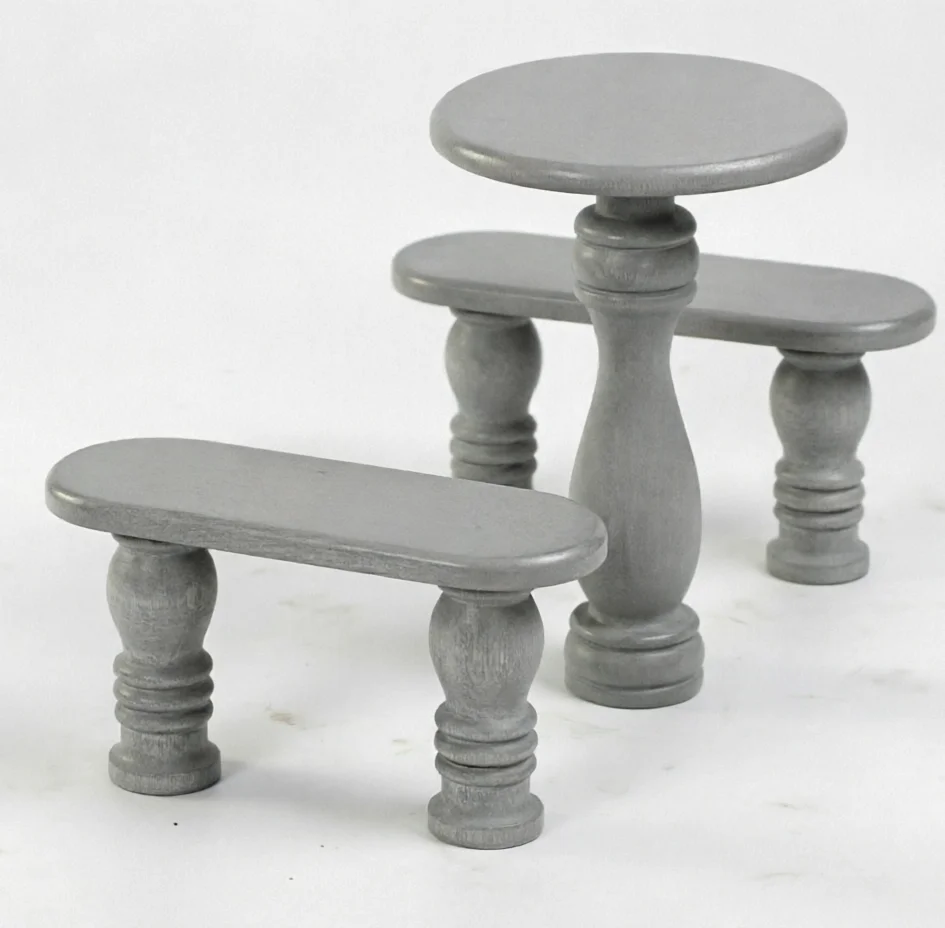 Лавка и стол светло-серые G603 - круглые