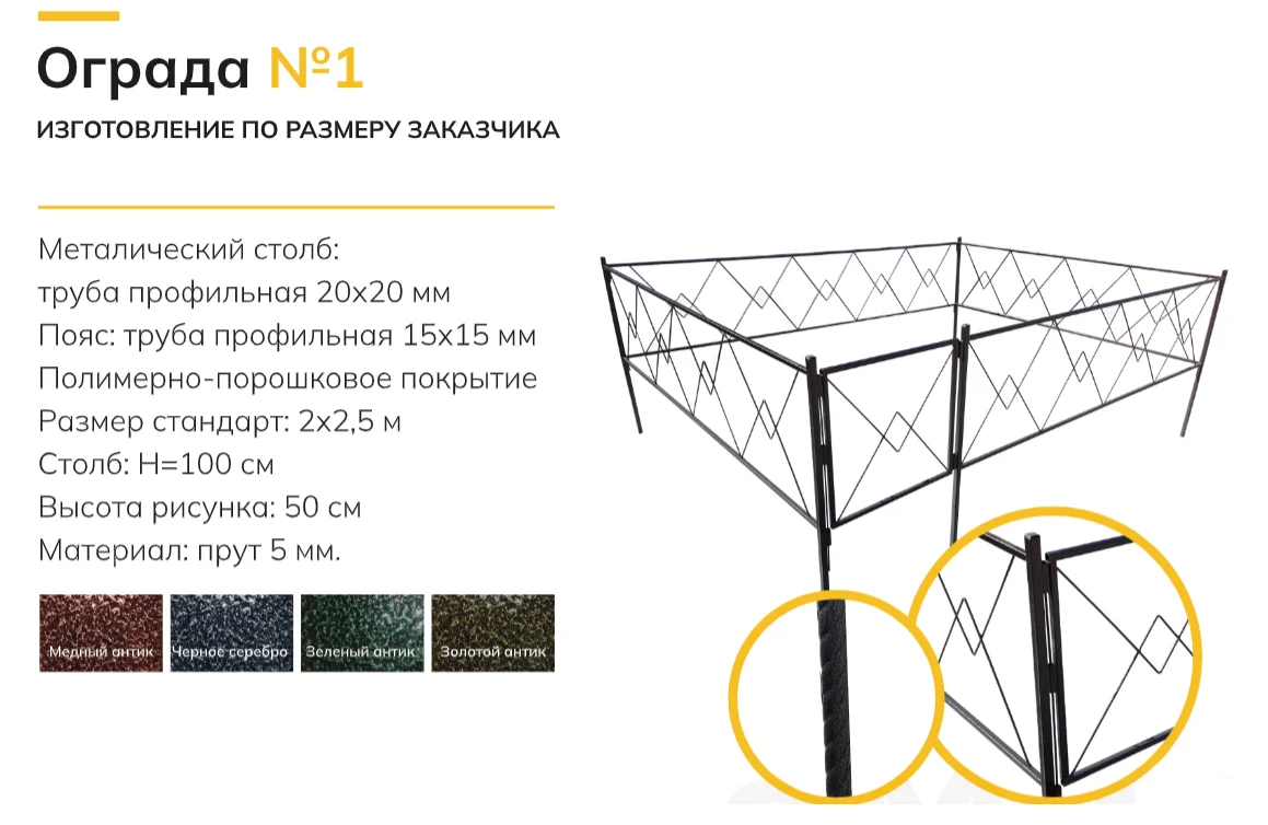 Стоимость на сайте указана за 1 погонный метр для стандартной ограды с 5 столбами.