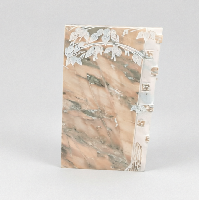 Саянский мрамор — натуральный камень с нежным рисунком, состоящим из серых, светло-жёлтых, бежевых полос и разводов.