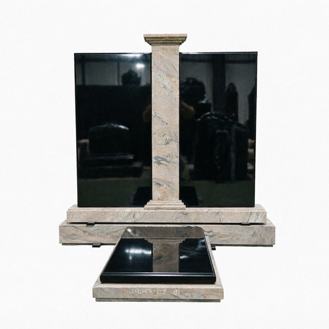 Стела выполнена из высококачественного черного гранита, который отлично поддается гравировке. Гравировку можно выполнить с двух сторон.